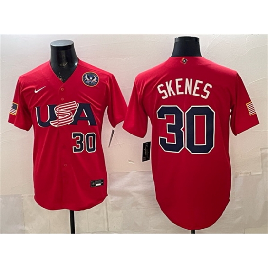 Home>MLB>2026 World Baseball>USA>Men USA Baseball 30 Paul Skenes Red 2026 World Baseball Classic United States 250th Anniversary Patch Stadium Stitched Jersey