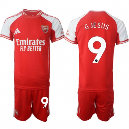 Men Arsenal FC 9 Gabriel Jesus Red 2025 Home Soccer Jersey Suit