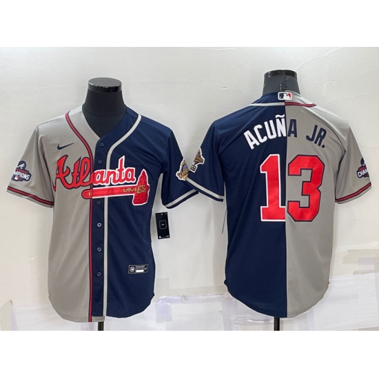 Home>MLB>Atlanta Braves>Men>Men Atlanta Braves 13 Ronald Acuna Jr Gray Navy Two Tone Split Cool Base Stitched Baseball Jersey