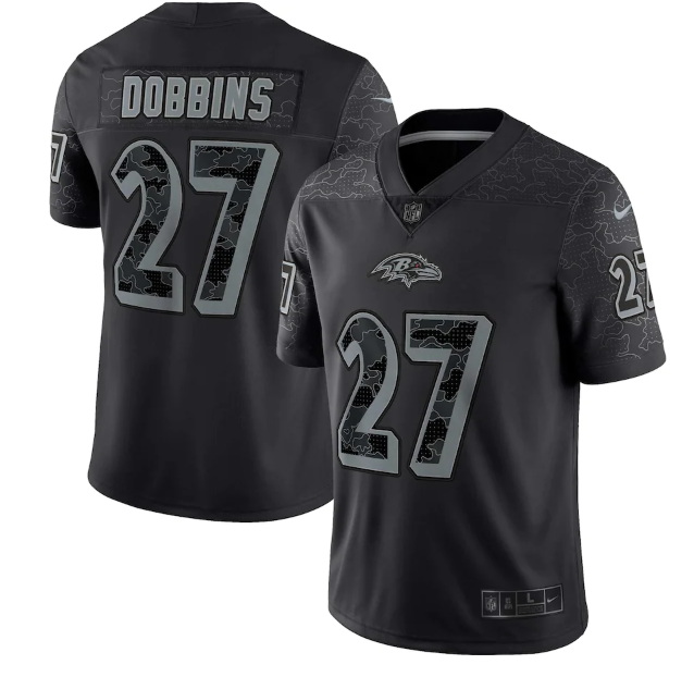 Home>NFL>Baltimore Ravens>Men>Men Baltimore Ravens 27 J K Dobbins Black Reflective Limited Stitched Football Jersey