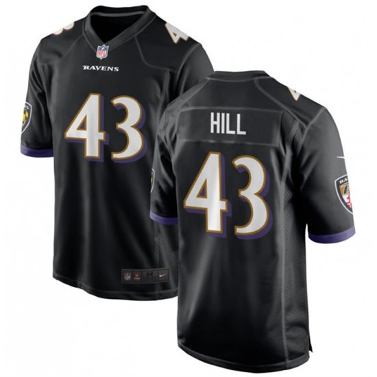 Home>NFL>Baltimore Ravens>Men>Men Baltimore Ravens 43 Justice Hill Black Game Football Jersey