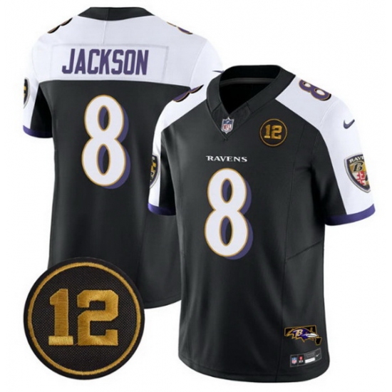 Home>NFL>Baltimore Ravens>Men>Men Baltimore Ravens 8 Lamar Jackson Black Alternate 2025 F U S E Jacoby Jones Patch Vapor Limited Football Jersey