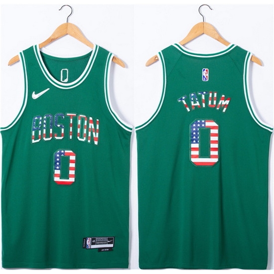 Men Boston Celtics 0 Jayson Tatum USA Flag Green Stitched Jersey