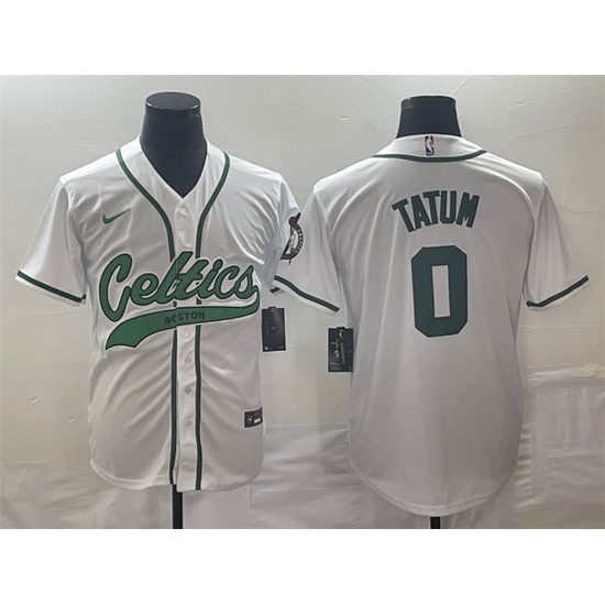 Men Boston Celtics 0 Jayson Tatum White Stitched Baseball Jersey