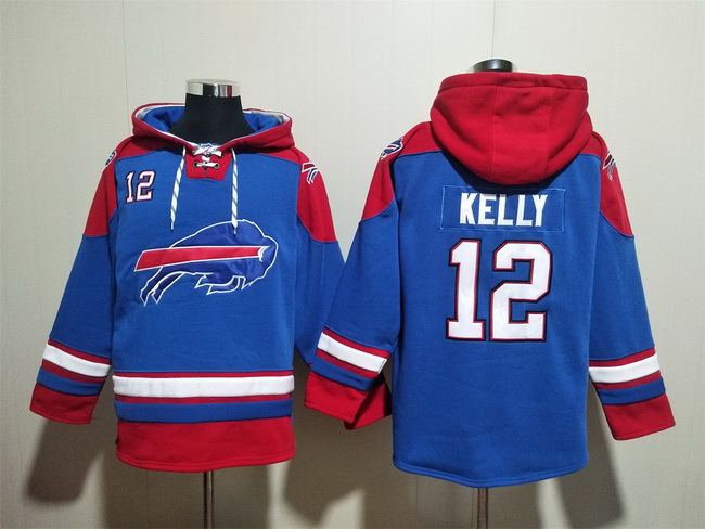 Men Buffalo Bills #12 Jim Kelly Aqua Lace Up Pullover Hoodie