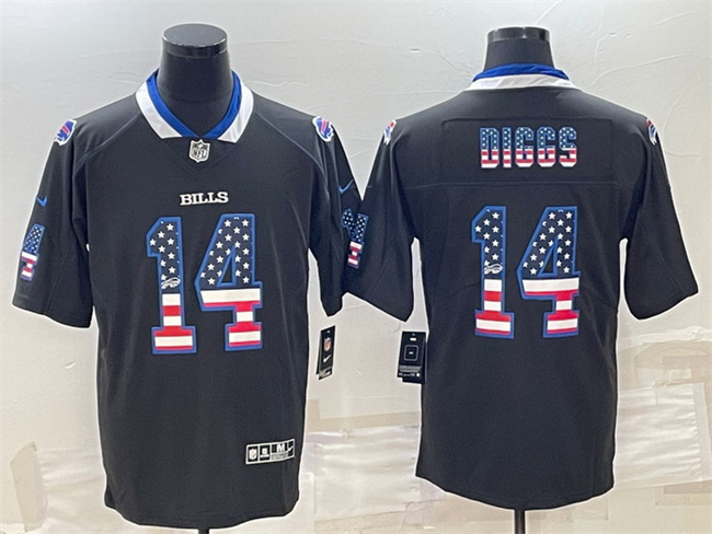 Home>NFL>Buffalo Bills>Men>Men Buffalo Bills 14 Stefon Diggs Black 2018 USA Flag Fashion Limited Stitched Jersey