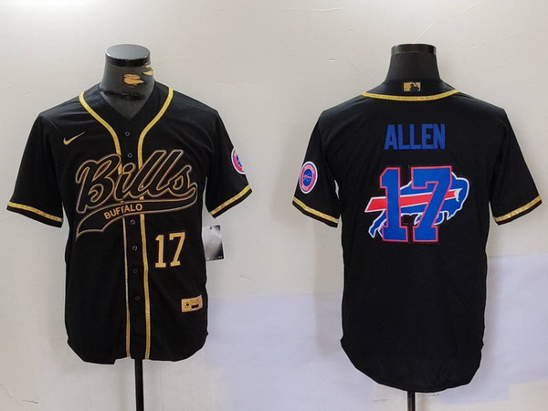 Men Buffalo Bills 17 Josh Allen Black Cool Base Stitched Baseball Jersey 7