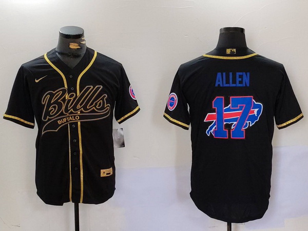 Men Buffalo Bills 17 Josh Allen Black Cool Base Stitched Baseball Jersey