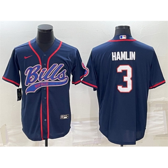 Men Buffalo Bills 3 Damar Hamlin Navy With Patch Cool Base Stitched Baseball Jersey