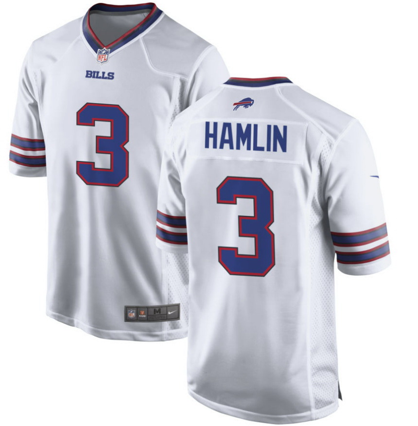 Men Buffalo Bills 3 Damar Hamlin Nike white Player Jersey