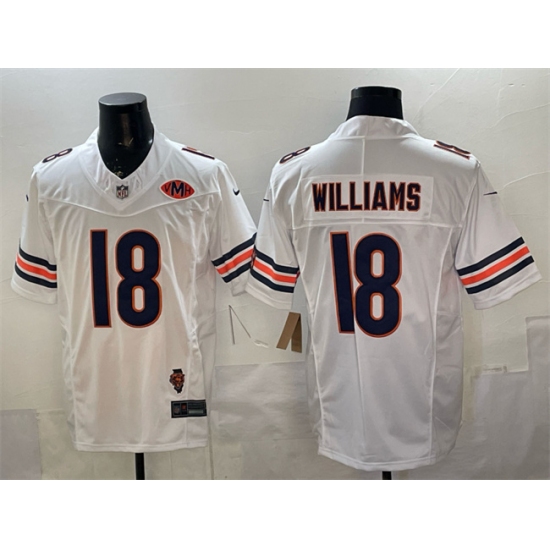 Home>NFL>Chicago Bears>Men>Men Chicago Bears 18 Caleb Williams White F U S E With Illinois and VMH Patch Stitched Football Jersey