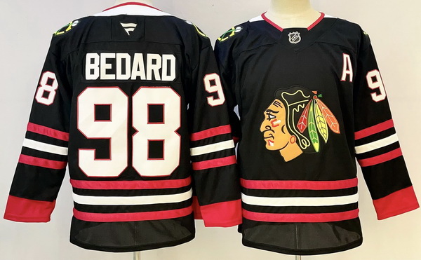 Men Chicago Blackhawks 98 Connor Bedard Black Stitched Hockey Jersey