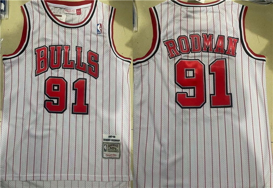 Men Chicago Bulls 91 Dennis Rodman White Stitched Jersey