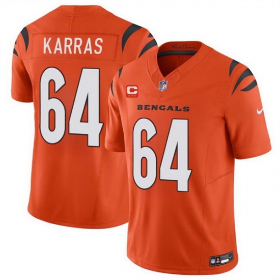 Home>NFL>Cincinnati Bengals>Men>Men Cincinnati Bengals 64 Ted Karras Orange 2024 F U S E With 3 Star C Patch Vapor Untouchable Limited Stitched Jersey