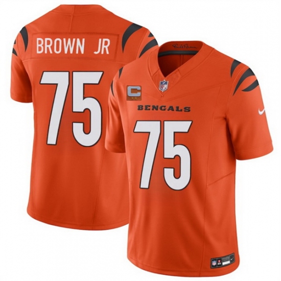 Men Cincinnati Bengals 75 Orlando Brown Jr Orange 2025 F U S E With 2 Star C Patch Vapor Untouchable Limited Stitched Football Jersey
