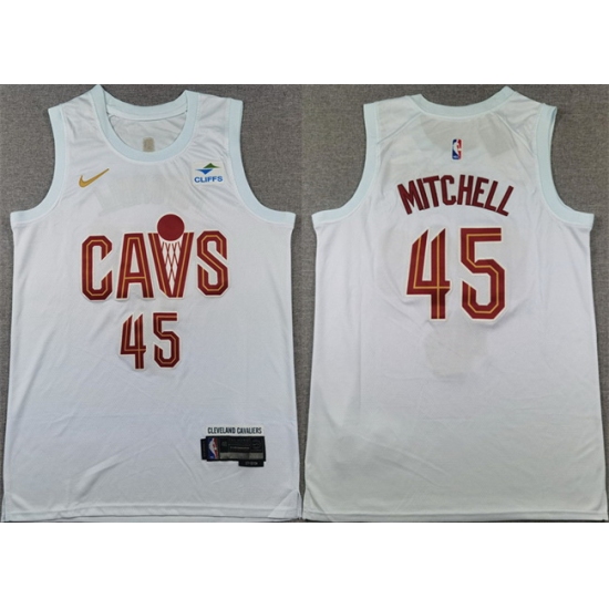Men Cleveland Cavaliers 45 Donovan Mitchell White Association Edition Stitched Jersey