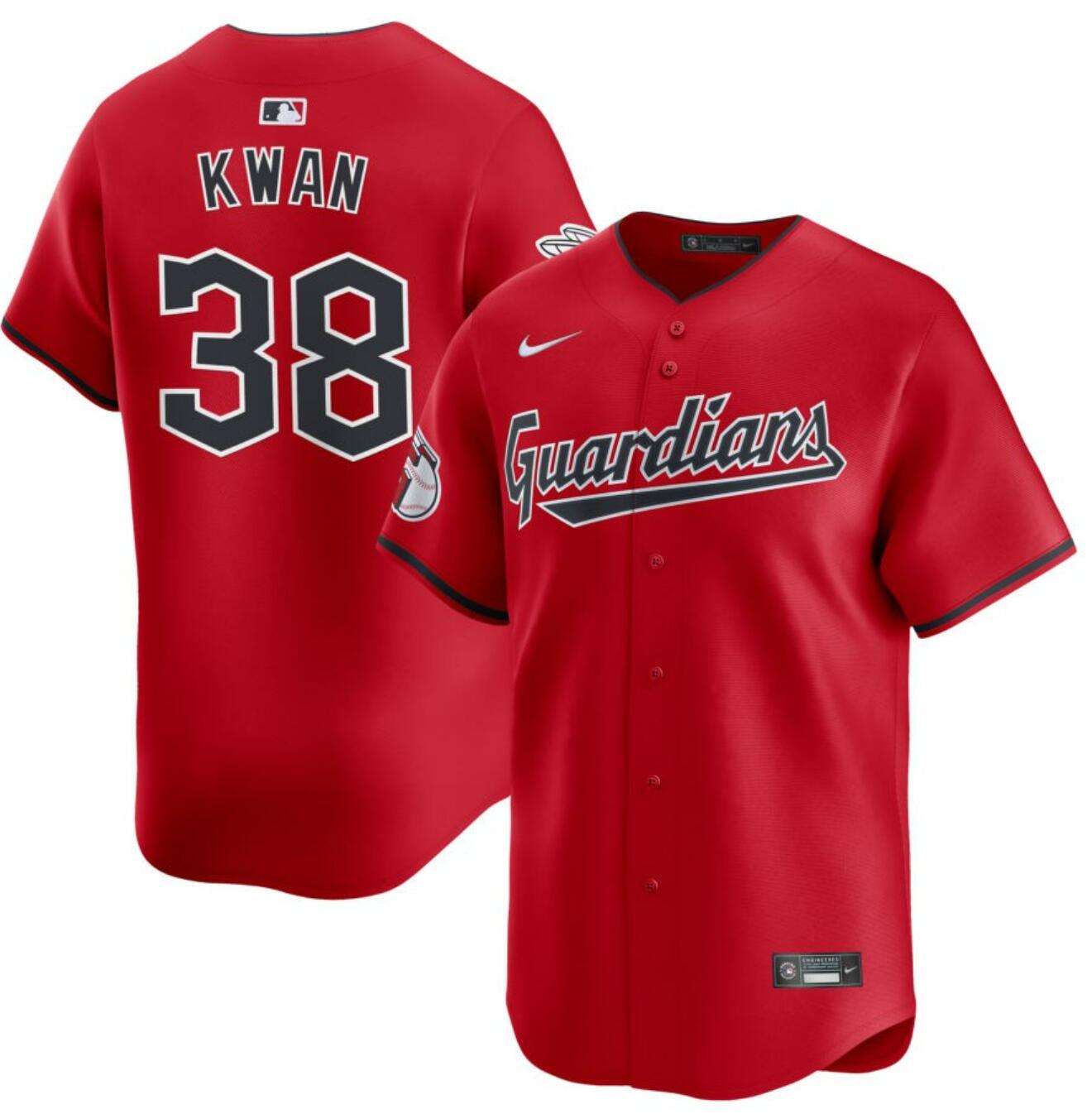 Home>MLB>Cleveland Guardians>Men>Men Cleveland Guardian #38 Steven Kwan Red Stitched MLB Jersey