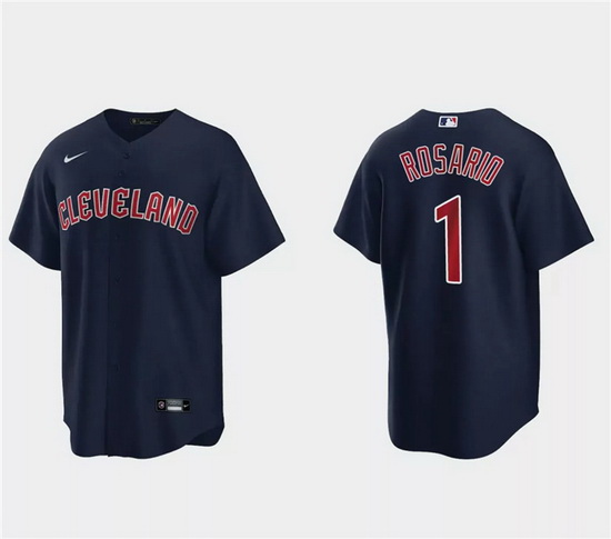 Men Cleveland Guardians 1 Amed Rosario Navy Cool Base Stitched Jersey