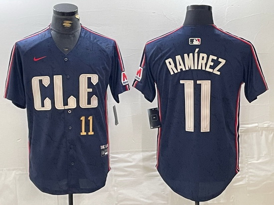 Home>MLB>Cleveland Guardians>Men>Men Cleveland Guardians 11 Jose Ramirez Navy 2024 City Connect Limited Stitched Baseball Jersey 3