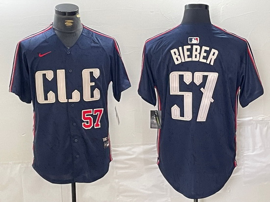 Home>MLB>Cleveland Guardians>Men>Men Cleveland Guardians 57 Shane Bieber Navy 2024 City Connect Limited Stitched Baseball Jersey 3