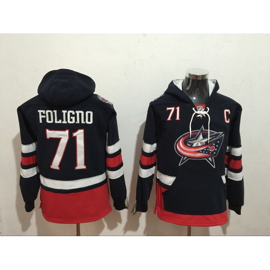 Men Columbus Blue Jackets 71 Nick Foligno Blue Stitched Hoody