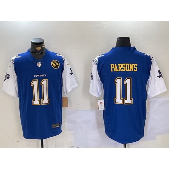 Men Dallas Cowboys 11 Micah Parsons 2024 F U S E Navy Gold With Texas 26 John Madden Patch Stitched Football Jersey