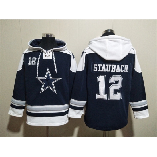 Home>Hoodie T Shirt>NFL Hoodie>Dallas Cowboys>Men>Men Dallas Cowboys 12 Roger Staubach Navy Ageless Must Have Lace Up Pullover Hoodie