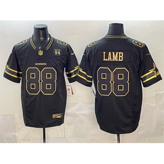 Men Dallas Cowboys 88 CeeDee Lamb Black Gold 2025 F U S E 94 Marshawn Kneeland Memorial Patch Vapor Limited Stitched Football Jersey