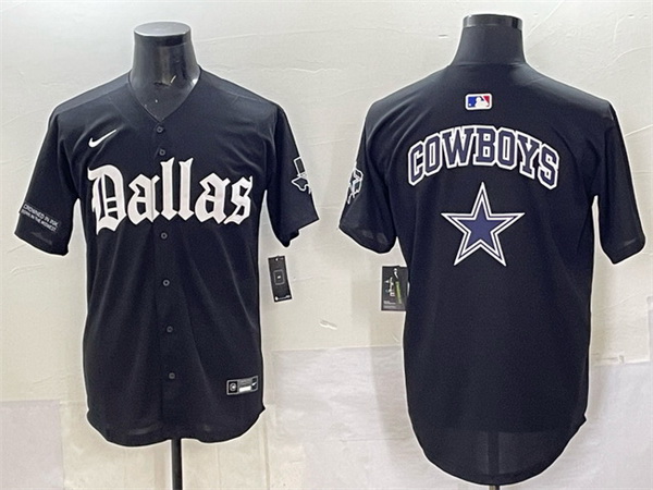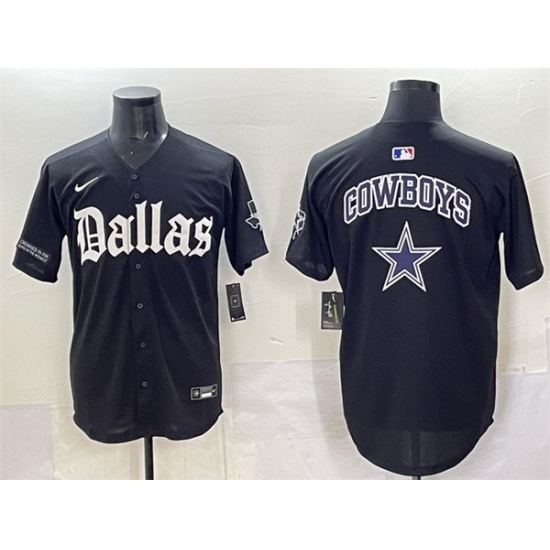 Home>NFL>Dallas Cowboys>Men>Men Dallas Cowboys Team Big Logo Black Gothic Lone Star Edition Limited Stitched Baseball Jersey 1