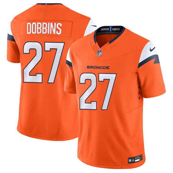 Home>NFL>Denver Broncos>Men>Men Denver Broncos 27 J K Dobbins Orange 2025 F U S E Vapor Limited Stitched Football Jersey