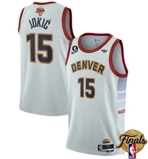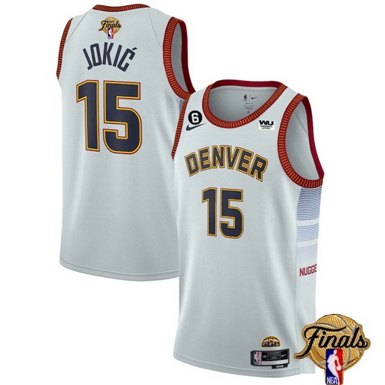 Men Denver Nuggets 15 Nikola Jokic White 2023 Finals Icon Edition With NO 6 Patch Stitched Basketball Jersey
