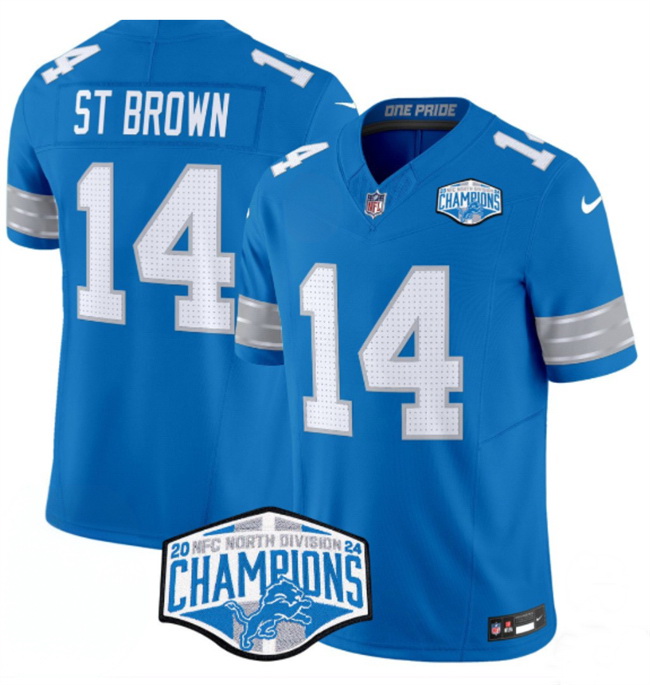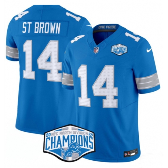 Men Detroit Lions 14 Amon Ra St Brown Blue 2024 NFC North Champions F U S E Vapor Limited Stitched Jersey