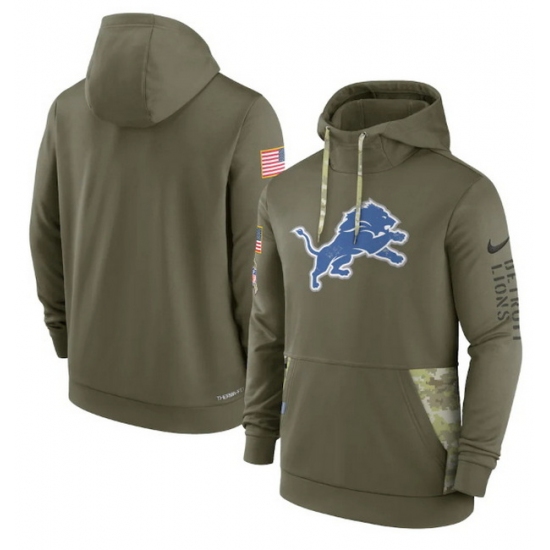 Home>Hoodie T Shirt>NFL Hoodie>Detroit Lions>Men>Men Detroit Lions 2022 Olive Salute To Service Therma Performance Pullover Hoodie
