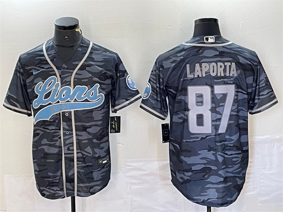 Home>NFL>Detroit Lions>Men>Men Detroit Lions 87 Sam LaPorta Grey Camo Cool Base Stitched Baseball Jersey