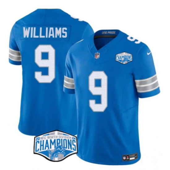 Men Detroit Lions 9 Jameson Williams Blue 2024 NFC North Champions F U S E Vapor Limited Stitched Jersey