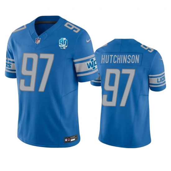 Home>NFL>Detroit Lions>Men>Men Detroit Lions 97 Aidan Hutchinson Blue 2023 F U S E 90th Anniversary Vapor Untouchable Limited Stitched Jersey