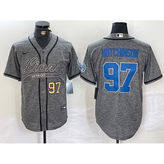 Men Detroit Lions 97 Aidan Hutchinson Grey Cool Base Stitched Baseball JerseyS 1