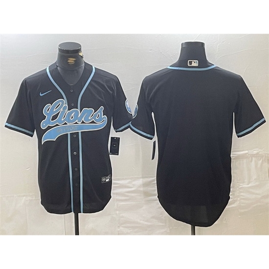 Men Detroit Lions Blank Black Cool Base Stitched Baseball Jersey