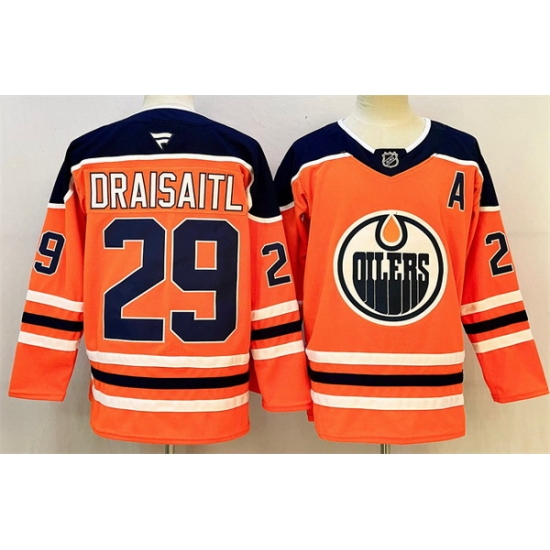 Men Edmonton Oilers 29 Leon Draisaitl Orange 2025 Stitched Hockey Jersey