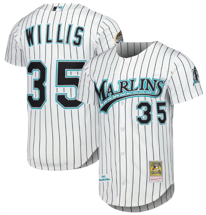 Home>MLB>Boston Red Sox>Men>Men Florida Marlins Dontrelle Willis #35 Mitchell & Ness White Throwback Stitched Baseball Jersey