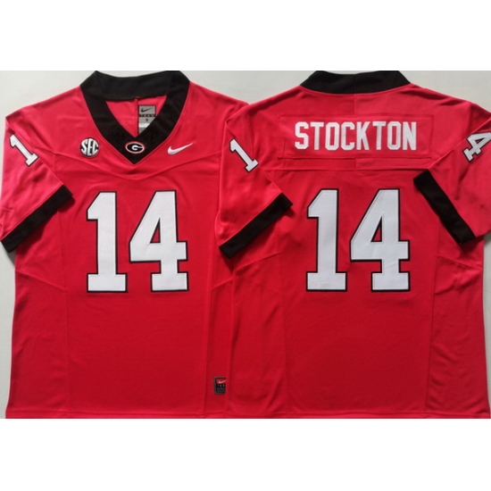Men Georgia Bulldogs Red #14 Gunner Stockton Stitched NCAA Jersey