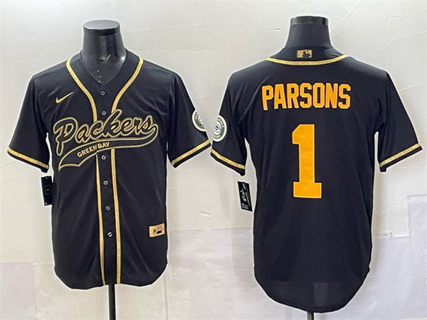 Men Green Bay Packers 1 Micah Parsons Black Gold Cool Base Stitched Baseball Jersey