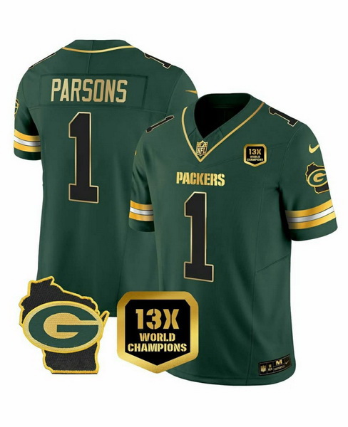 Home>NFL>Green Bay Packers>Men>Men Green Bay Packers 1 Micah Parsons Green 2025 F U S E Champions Patch and G Patch Vapor Untouchable Limited Stitched Football Jersey