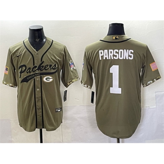 Men Green Bay Packers 1 Micah Parsons Olive Salute to Service Cool Base Stitched Baseball Jersey