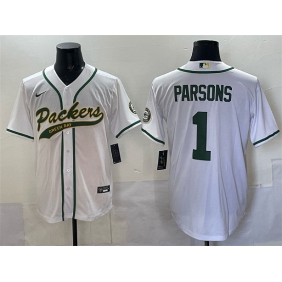 Men Green Bay Packers 1 Micah Parsons White Cool Base Stitched Baseball Jersey
