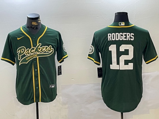 Home>NFL>Green Bay Packers>Men>Men Green Bay Packers 12 Aaron Rodgers Green Cool Base Stitched Baseball Jersey 1