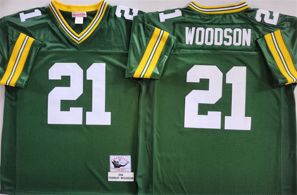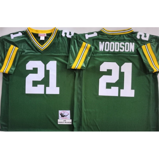 Men Green Bay Packers 21 Charles Woodson Green Throwback Stitched Football Jersey