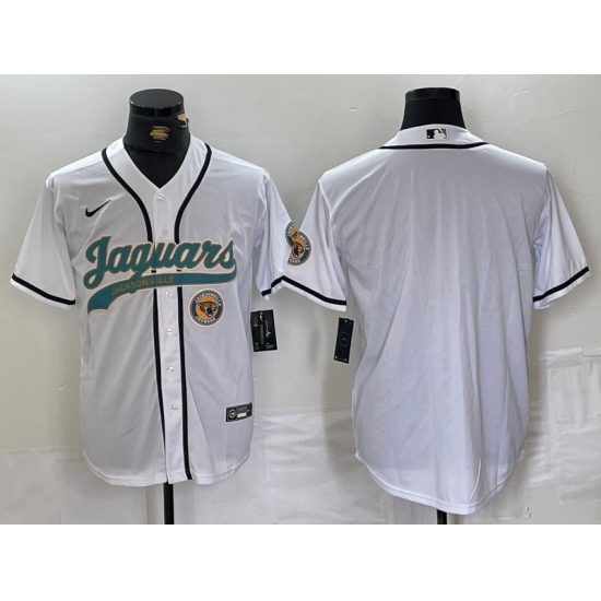 Men Jacksonville Jaguars White With Patch Cool Base Stitched Baseball Jersey
