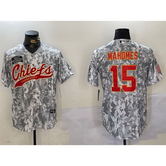 Men Kansas City Chiefs 15 Patrick Mahomes 2024 Arctic Camo Salute To Service Stitched Baseball Jersey
