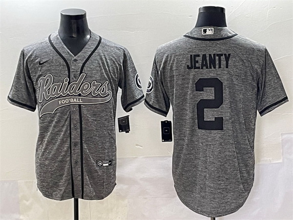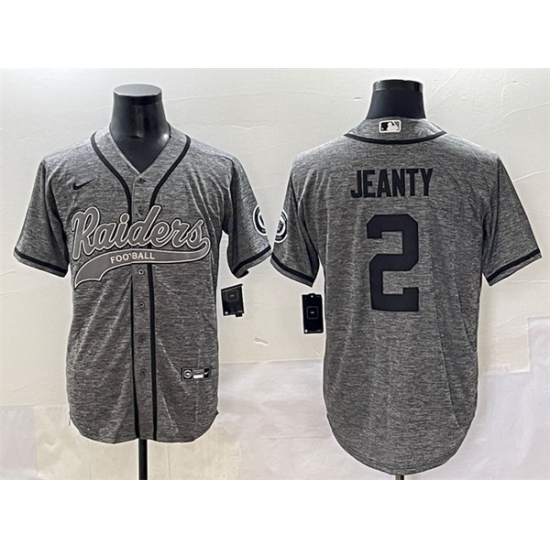 Home>NFL>Las Vegas Raiders>Men>Men Las Vegas Raiders 2 Ashton Jeanty Grey Cool Base Stitched Baseball Jersey 1